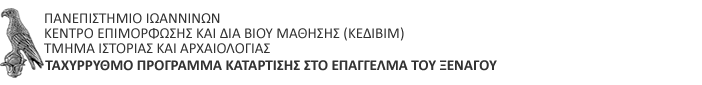 Το Τμήμα Ιστορίας και Αρχαιολογίας και το Κέντρο Δια Βίου Μάθησης του Πανεπιστημίου Ιωαννίνων διοργανώνουν διά ζώσης εκπαιδευτικό πρόγραμμα με τίτλο "Ταχύρρυθμο Πρόγραμμα Κατάρτισης στο Επάγγελμα του Ξεναγού".